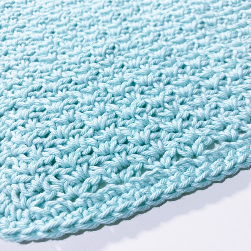 So let’s get into this month’s washcloth. I am in love with this one. Maybe it’s the colour, or maybe it’s the texture, but I am truly in love with this one! As always I have used knitpicks dishie yarn and a 5.5mm hook.