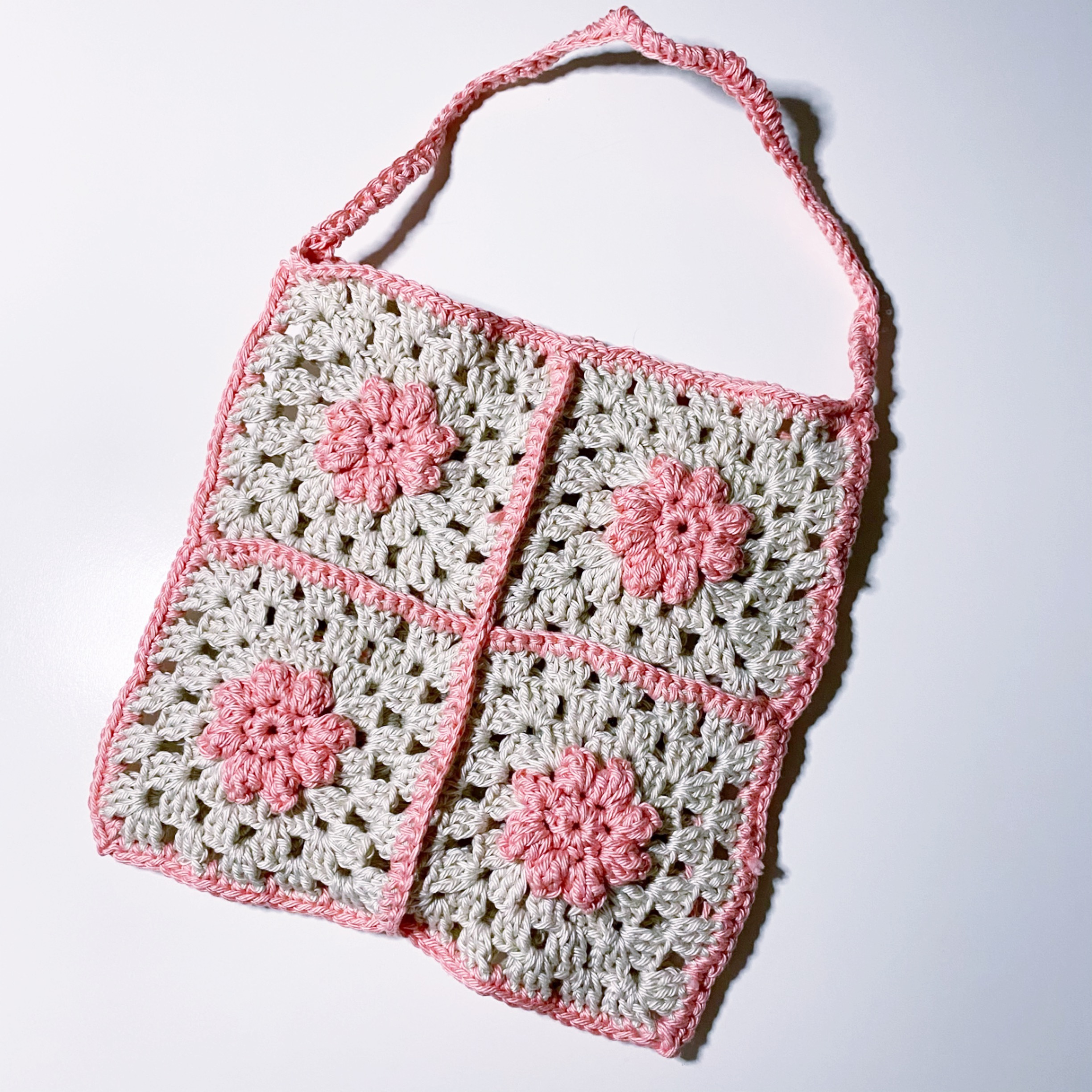 I can never have enough bags in my world. This one was made from 8 grannie squares joined together and then handles added at the top. You can check out the reel for it here.