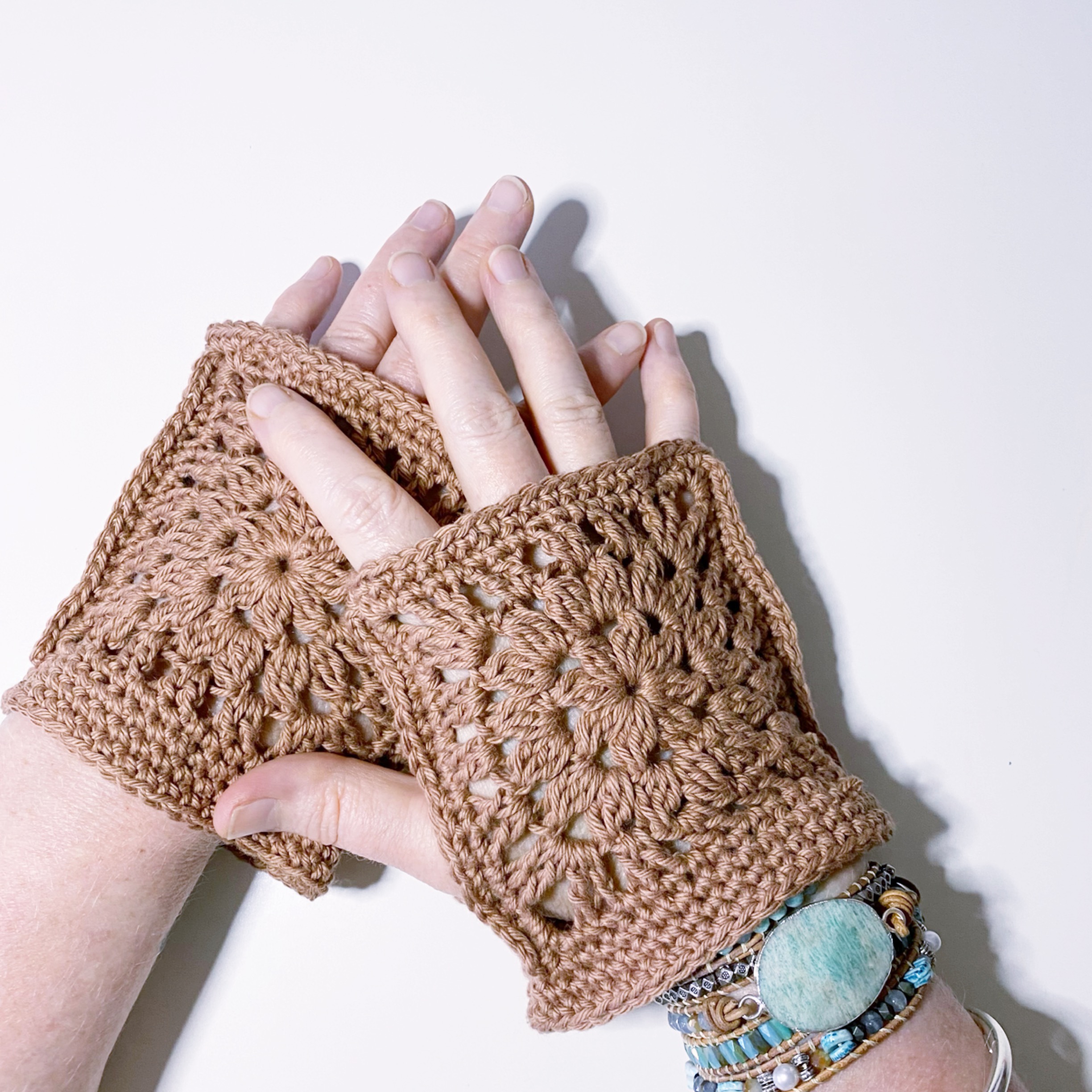 Gloves aren’t really needed this time of year where I live, but will be needed on the other side of the world! Each glove is made from 2 squares joined together – leaving room for a thumb and then added a band to cover the wrists. You can check out the reel for it here.
