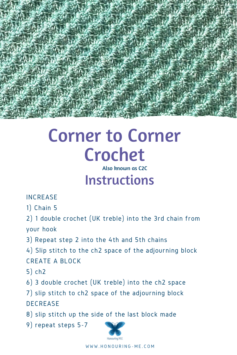 Corner to Corner is one of the most relaxing stitch patterns that I have come across. Once you get the hang of it it is an easy stitch to make.