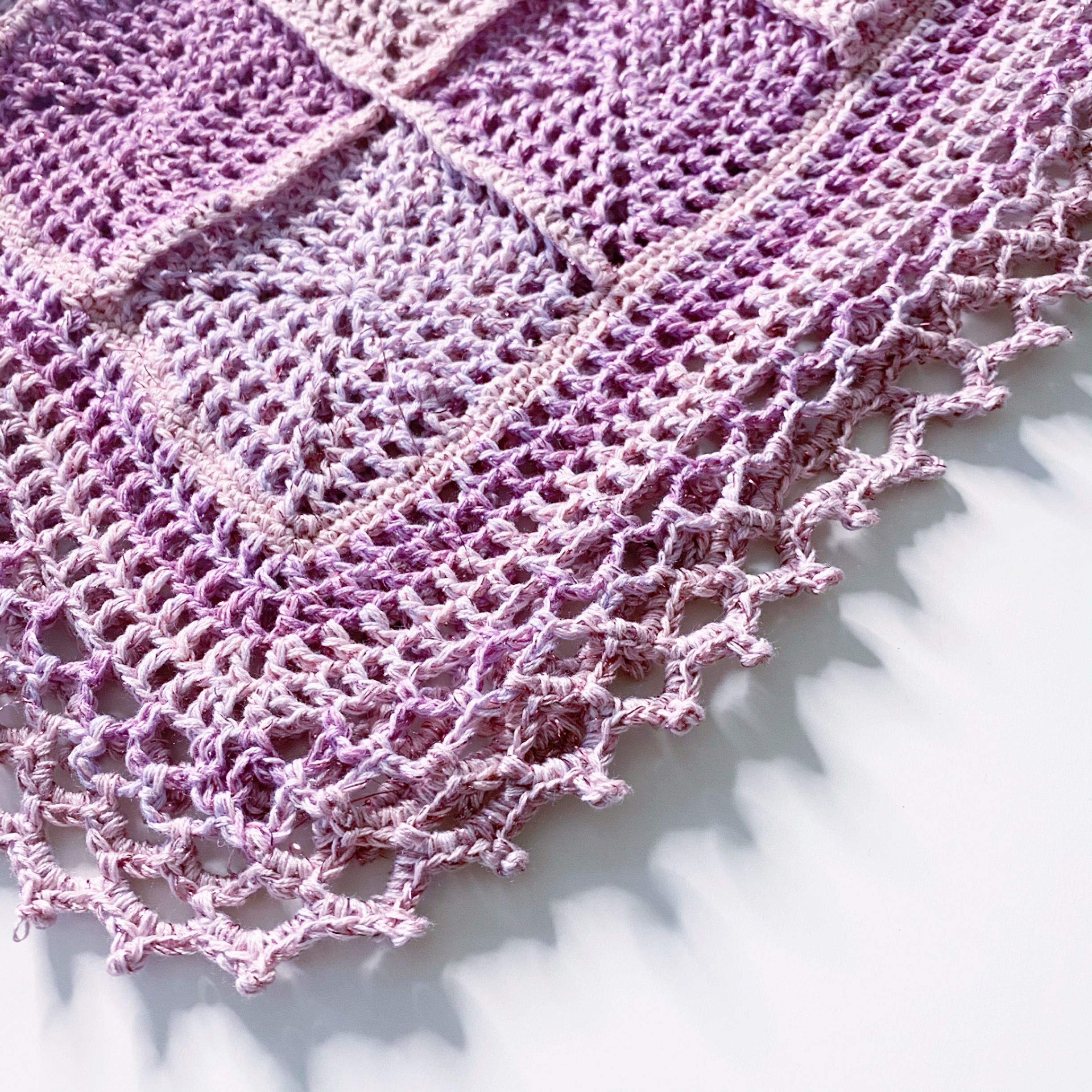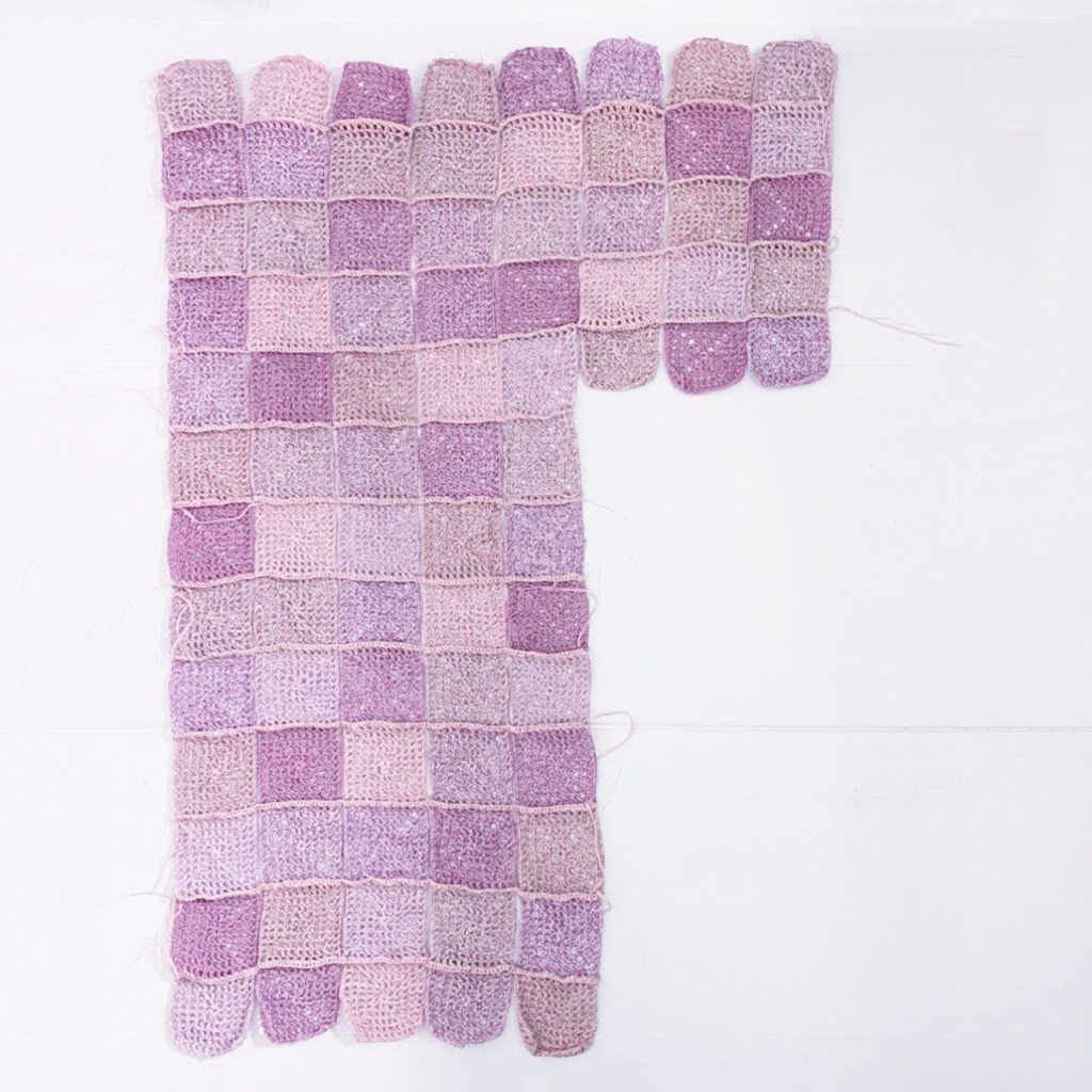 Your poncho design begins with the square and the yarn. I opted to use the filet square from my Hooked on Crochet Club. I wanted a simple design so that the yarn could so the talking. The yarn I opted for was a Lola Bobbel Box, This one being Rosalie Glitter, and judging by the amount of yarn I had left over and the weight of the finished product I could get two ponchos of this style from the box.