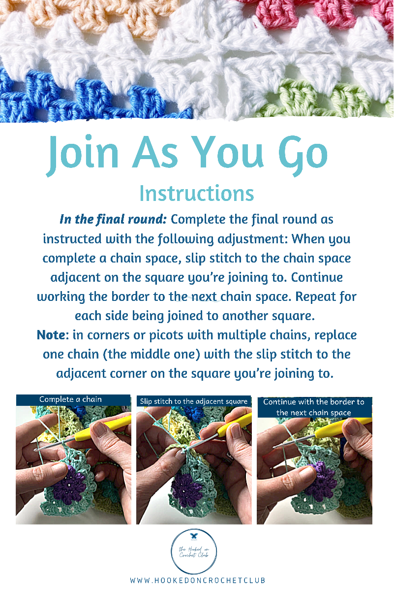 With the Square a Day Challenge on this month it seemed fitting to share a tutorial on the Join as you go (JAYG) technique that I use for joining squares. Before learning how to do it I was quite intimidated by it, but I can say now that it is easier than you think! If you can make a chain and you can make a slip stitcumh, then you can join squares using this technique.