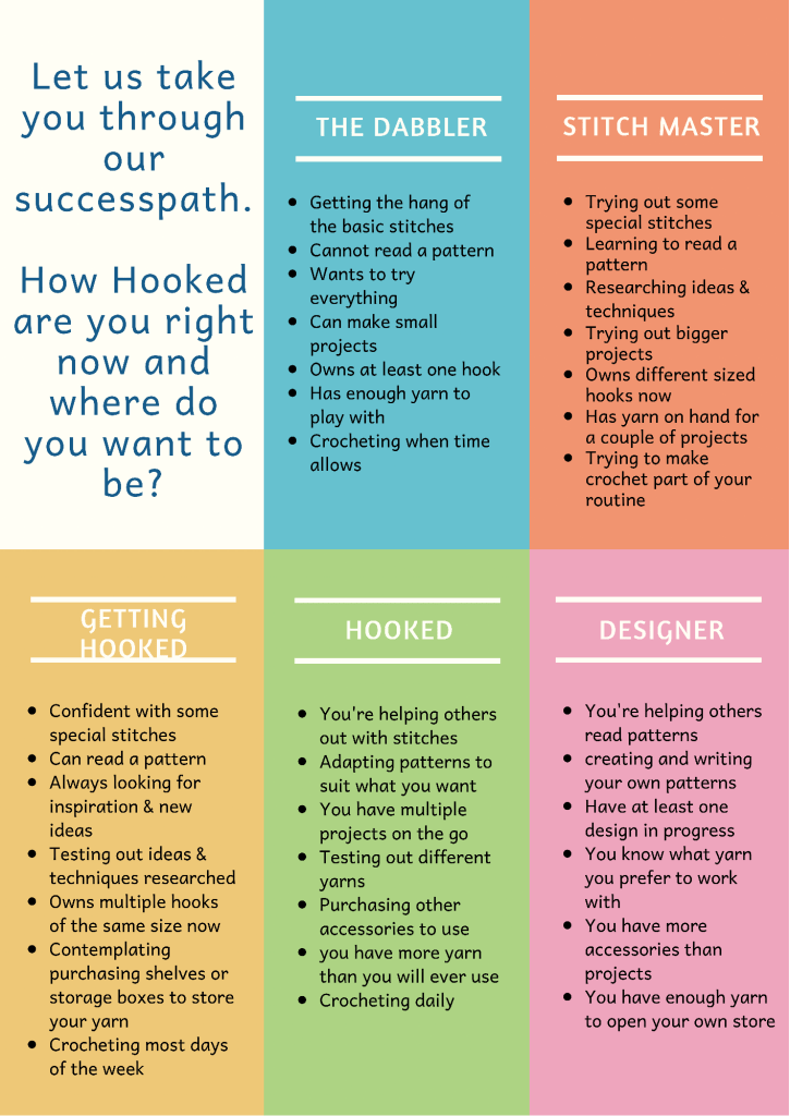 The projects in the Hooked on Crochet Club are designed to help you improve on your crochet skills. Whether you’re a beginner trying to learn new stitches and how things get created. Or whether you’re more experienced and want to learn to read patterns or create your own work from something you’ve seen. The clubhouse projects will help you get there.