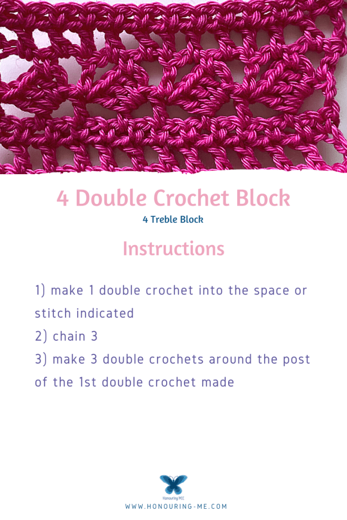 I’ve used this 4 double crochet block in the latest projects for the Hooked on Crochet Club and in my Off the Grid Whirl Pattern, so I thought it time to share a quick tutorial on how to make it.