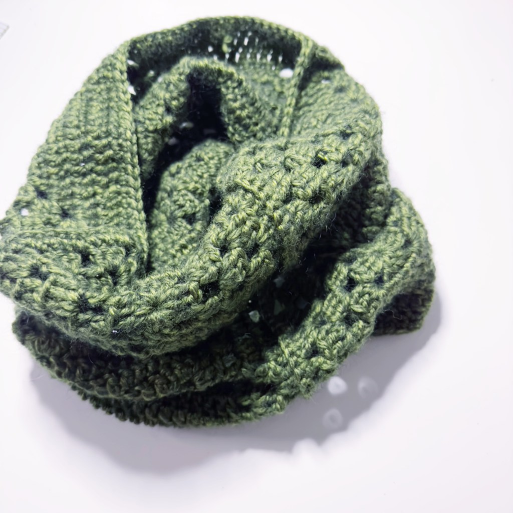 You can use any square or yarn for this one. If your square is smaller you might need to join them in a single row or a more open join, or alternatively make a couple of extra squares. It should be a snug fit to go over your head, but if it’s looser that is ok too.