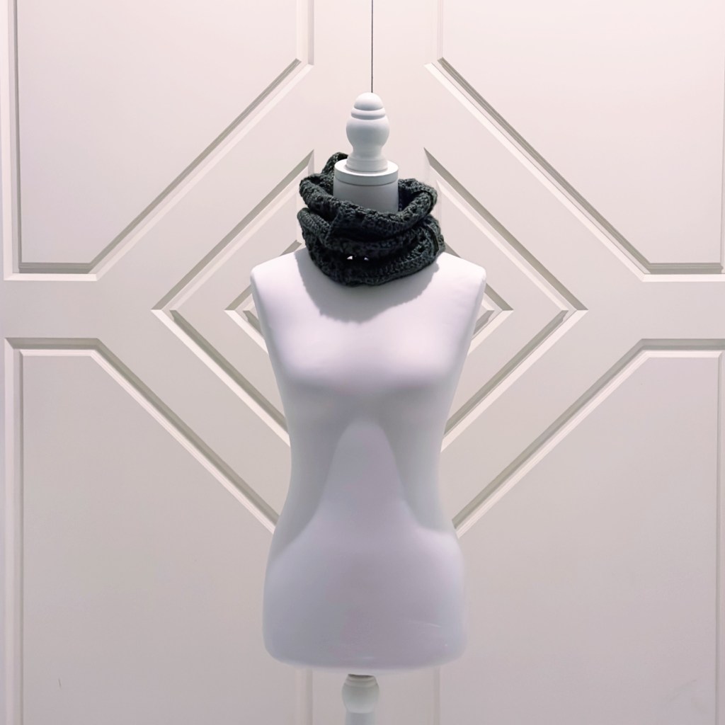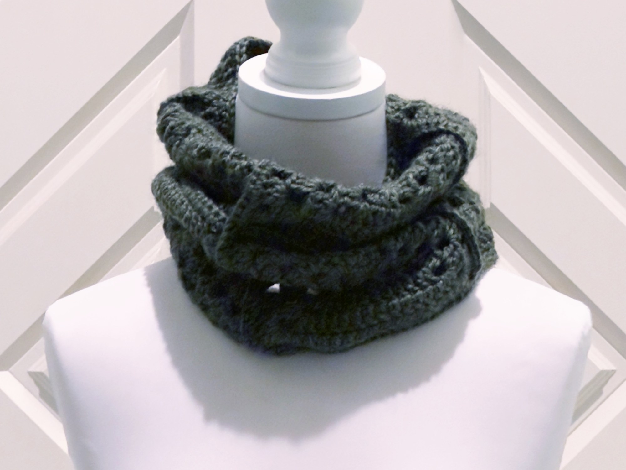 I used a chunky yarn to make this one and a square from the Hooked on Crochet Club. After making 8 of them I joined them as 2 rows of 4 and then joined them to form a ring. After that I added border to the top and bottom and called it done!