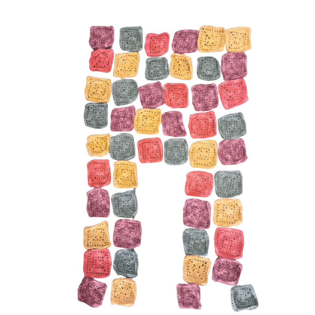 How many squares I used is not important here. How many squares you need is going to depend entirely on the size and design of the square that you choose as well as the size bolero you want to make. I have used 50 squares. Each ‘layer’ for this one was 10 squares – 6 for the back and 4 for the front. You could decide on much bigger or smaller squares and still get the same result as long as you adjust the layout accordingly. I could have made it with 10 much bigger squares – it would have been slightly shorter, but it would still be a bolero.