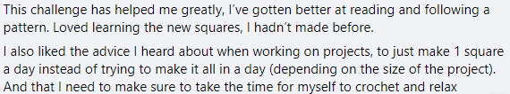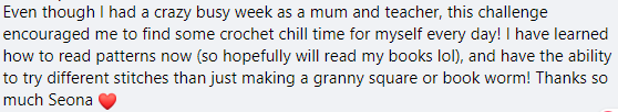 I have been hosting this challenge in one form or another for a few years now, and this is the last time it will be running for 2023. It’s starts October 02nd and we’ll be guiding you through the preparations leading up to then too. You really don’t want to miss out! It is such a wonderful opportunity to gain more Crochet Confidence which you can take into all of your future crochet projects. Below is just some of the feedback that I get every single time I run this challenge!