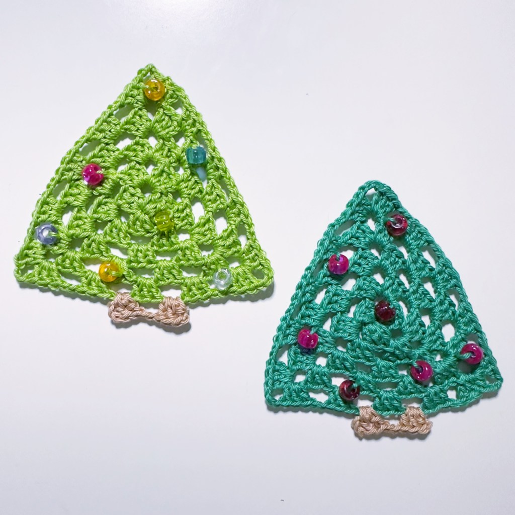 All you need is a triangle shaped granny square and some beads and you’re set! These can be used to create a garland, add to a card or even just hang on their own as an ornament. What would you use them for?