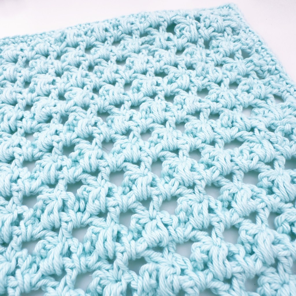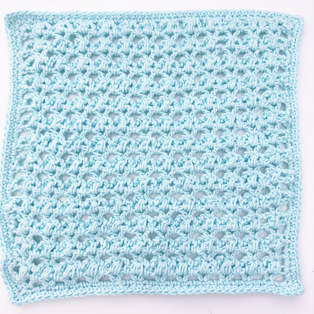 I’ve made it using my trusty KnitPicks Dishie and a 5mm hook. It works up quite quickly too given it’s lacey look. I’ve called it Whispering Puffs as it has a puff stitch with fewer yarn overs than usual. They’re almost whispering to us in the design.