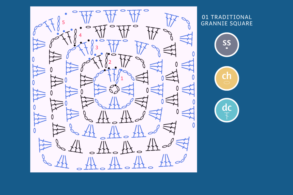 If you need a pattern to get you started I’ve included a chart below. If you want access to full tutorials to make the square – in right and left handed – then check out my Square a Day Challenge too.