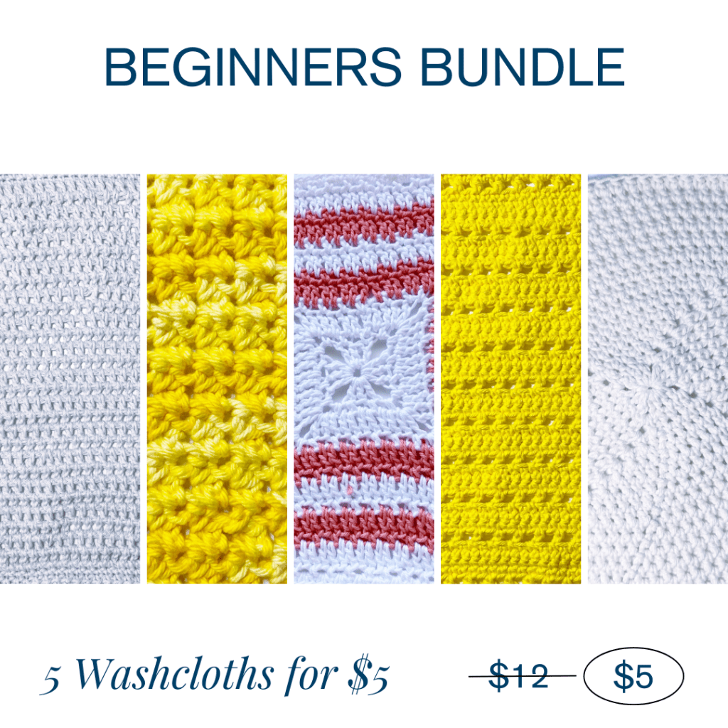 This year I’m trialling somthing different. And that is to bring you a washcloth bundle every month. Each bundle will contain 5 washcloth patterns that have been put together with a specific purpose in mind. I’ll be choosing them from my growing collection of washcloth patterns and bundling them together just for you.