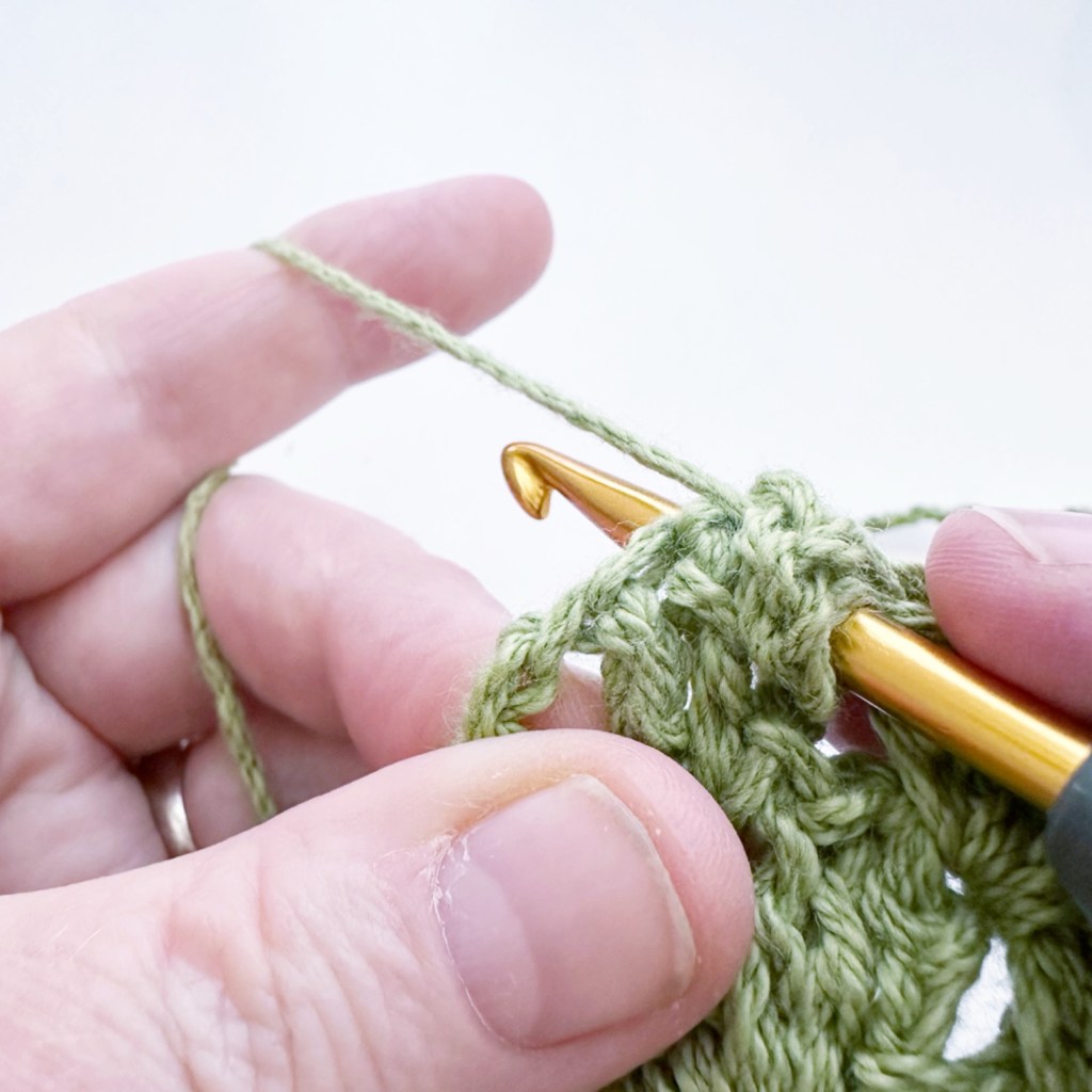 So what is the rule? The rule to remember is that you need to push the stitch out to the front. To do this you can work with any basic crochet stitch and you work around the post of the stitch in the row or round below instead of into it. When you’re working around the post you’re going to follow these instructions: