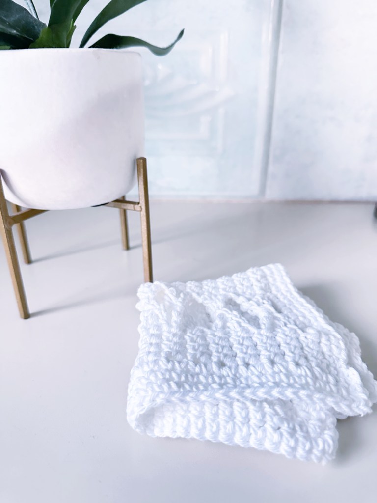 This month’s washcloth might look overly simple, but I promise that it is! It uses only basic stitches, and the easiest of basic stitches, so everyone could make this one!
