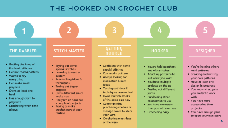 If you need to make time exploring then I encourage you to do that within a community of people that will support you. I have set up the Hooked on Crochet Club to help you do exactly that and the WIP planner is one of the resources that you’ll get when you join! Below is the journey that I help you through with everything that is inside. I’ve now added levels for entry too so that you can start where your budget is at.